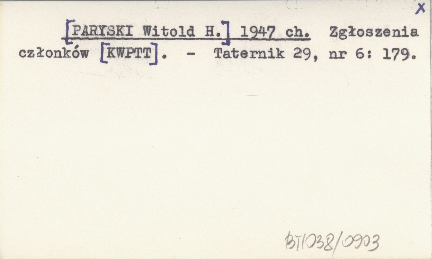 [PARYSKI Witold H.] 1947 ch Zgłoszenia członków [KWPTT].