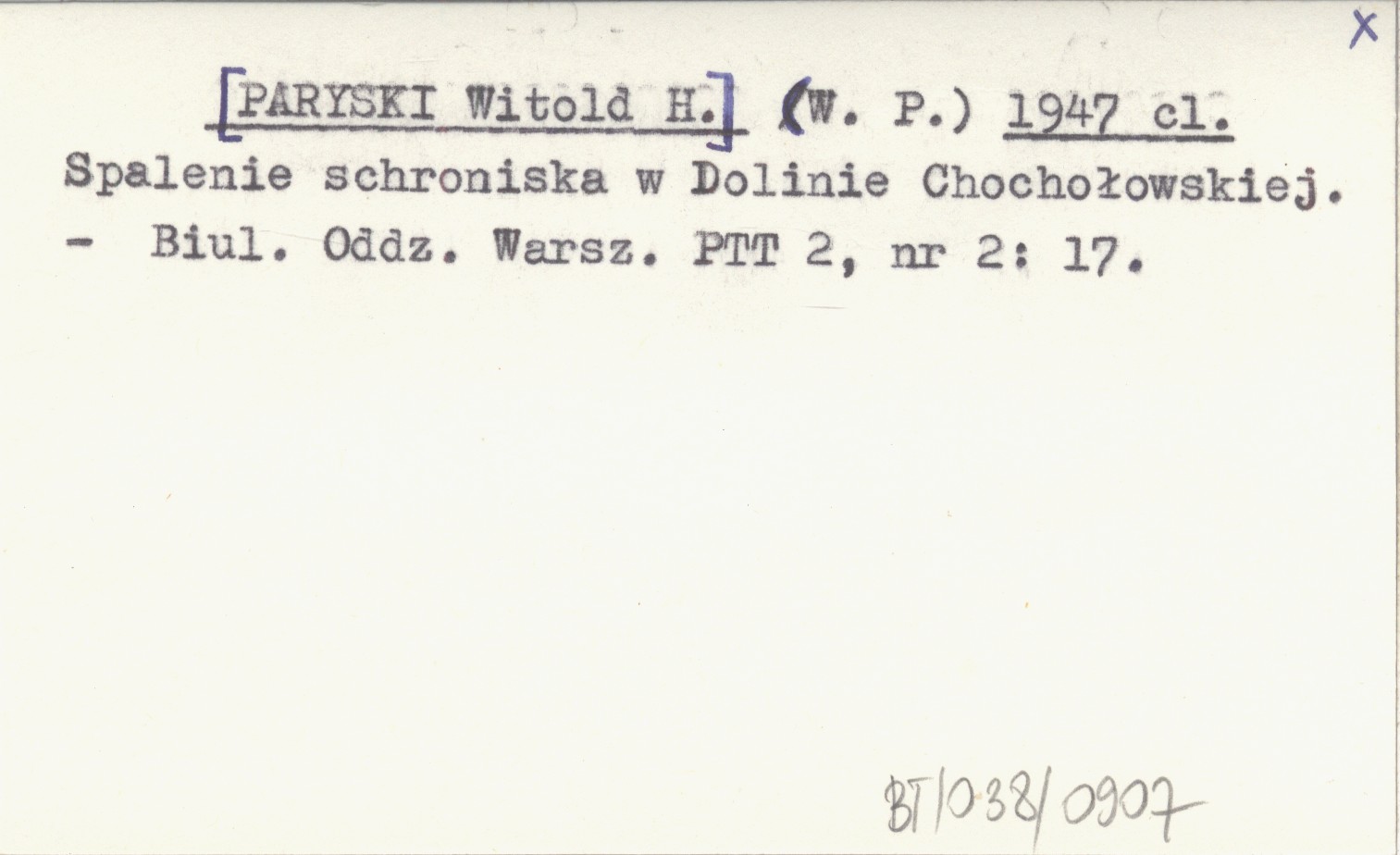 (W. P.) [PARYSKI Witold H.] 1947 cl Spalenie schroniska w Dolinie Chochołowskiej.