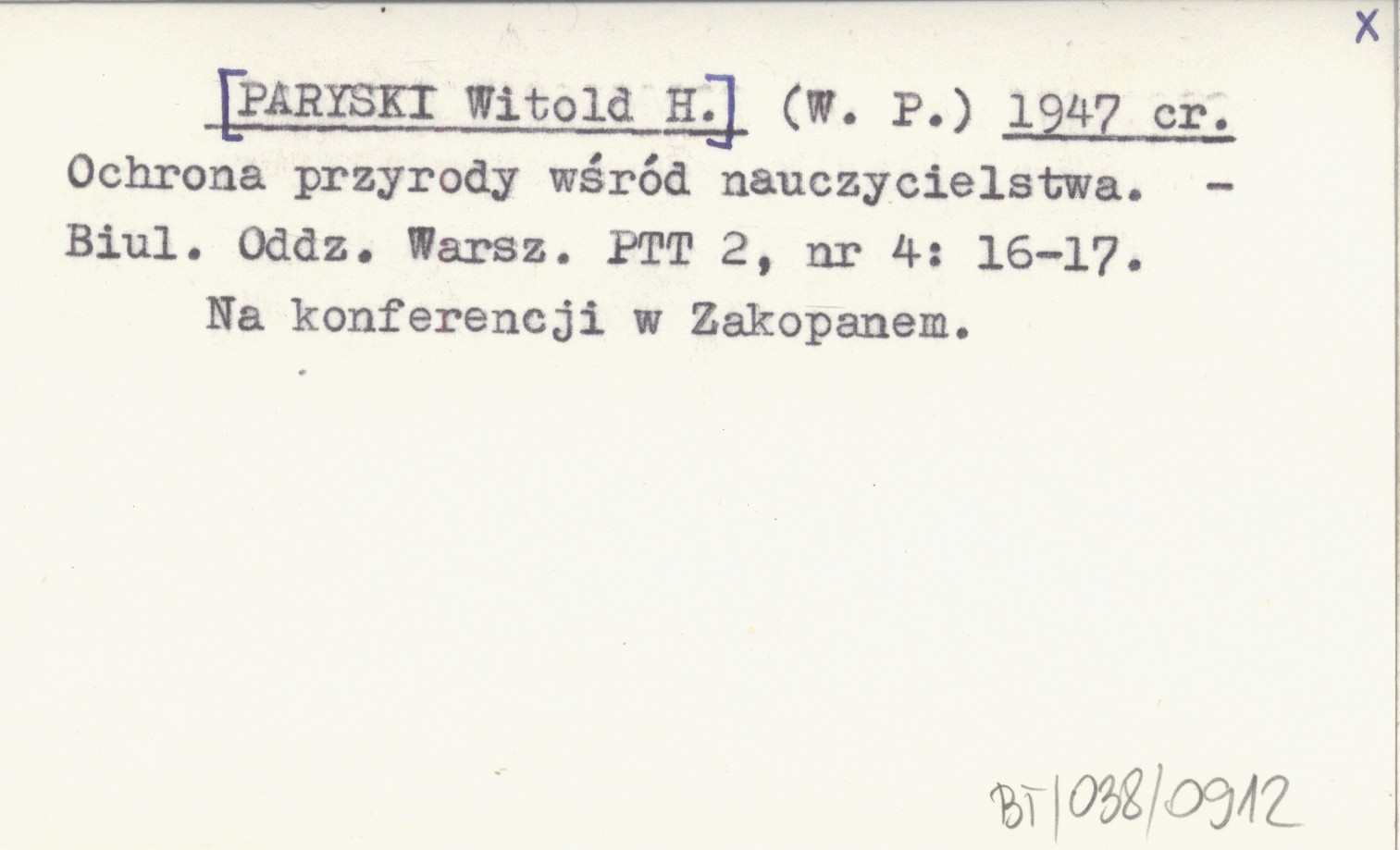 (W. P.) [PARYSKI Witold H.] 1947 cr Ochrona przyrody wśród nauczycielstwa.