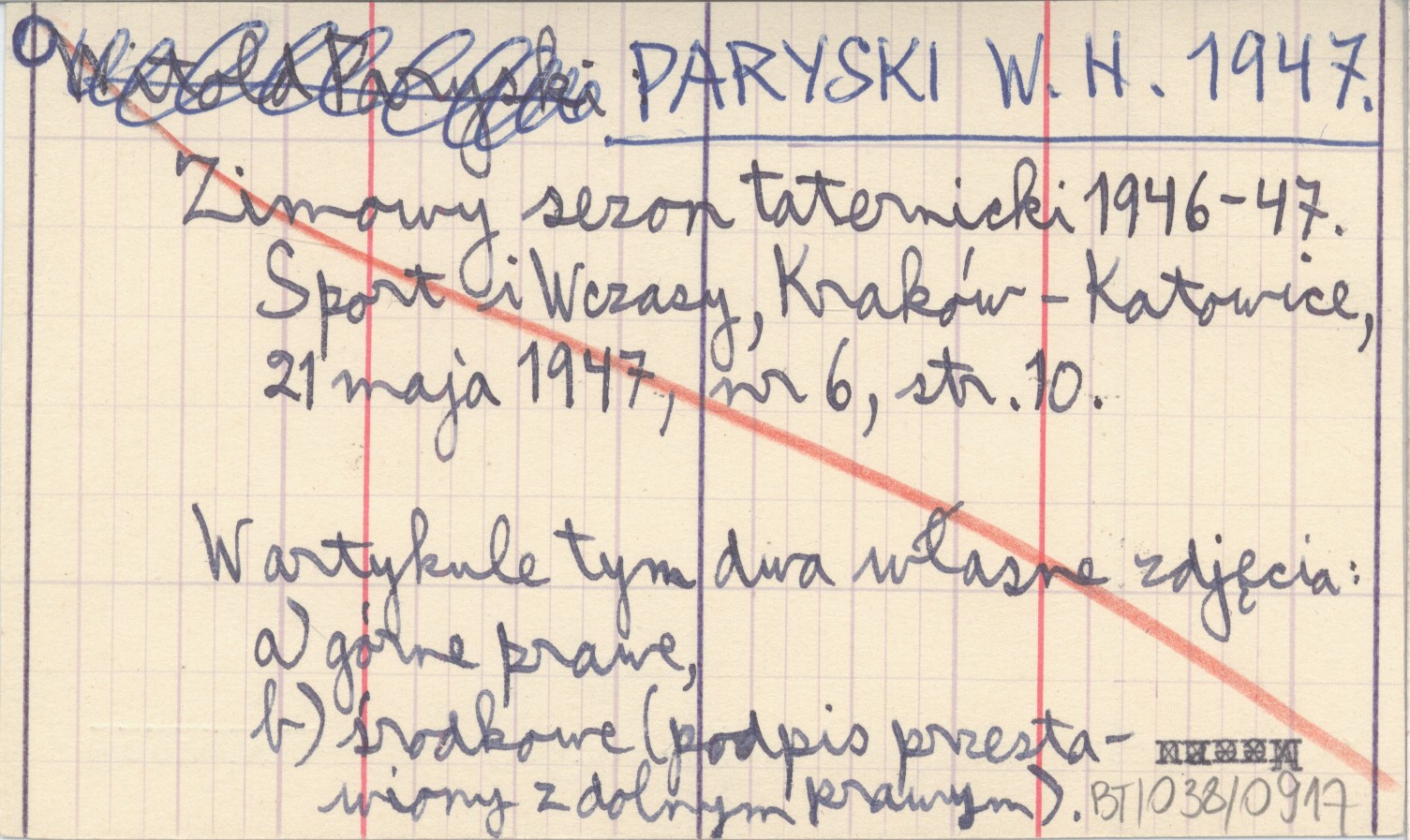 PARYSKI W. H. 1947 Zimowy sezon taternicki 1946-47.