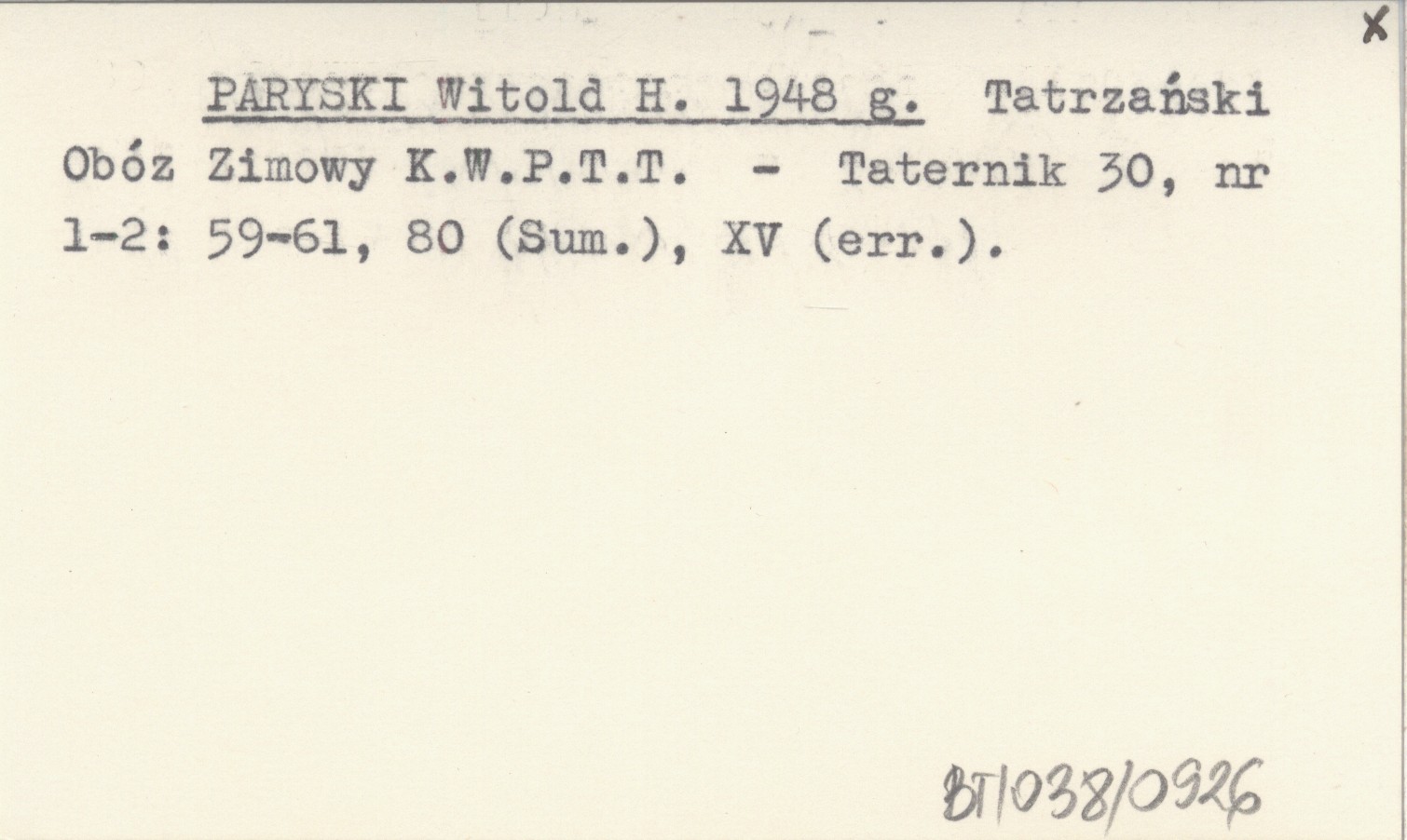 PARYSKI Witold H. 1948 g Tatrzański Obóz Zimowy K.W.P.T.T.