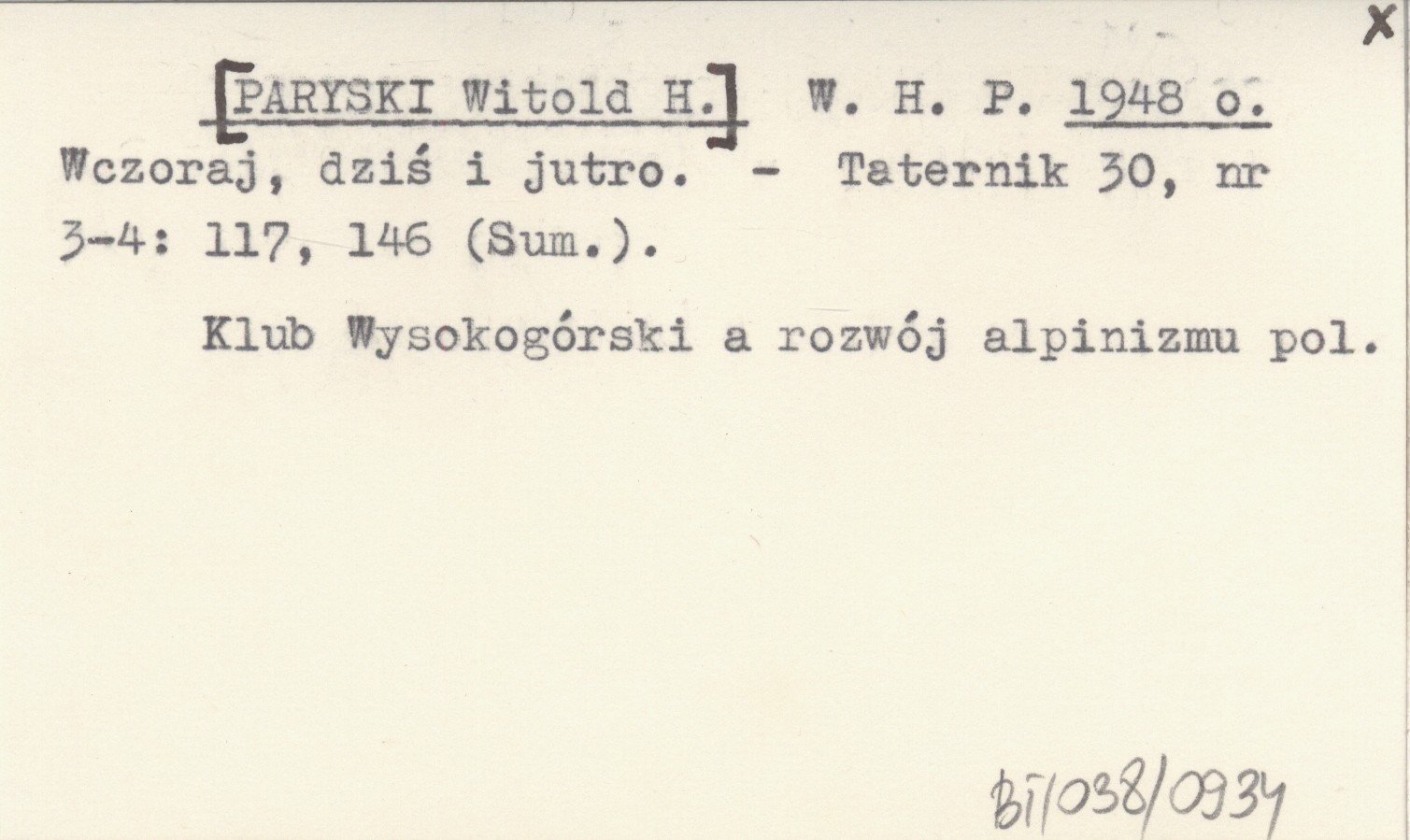 W. H. P. [PARYSKI Witold H.] 1948 o Wczoraj, dziś i jutro.