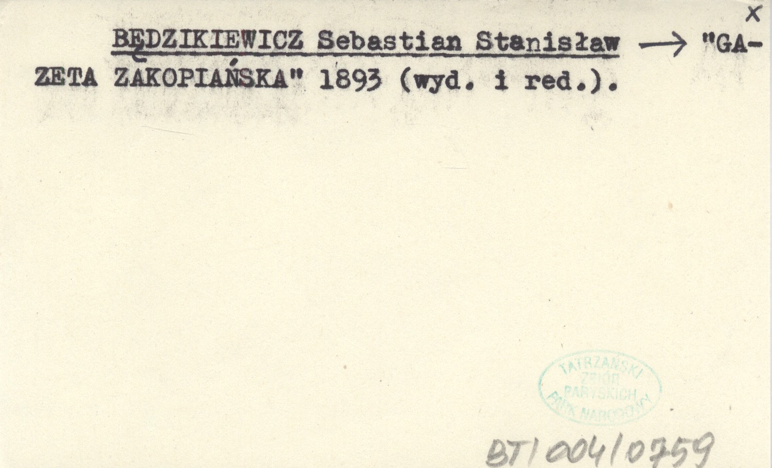 "GAZETA ZAKOPIAŃSKA" 1893 (wyd. i red.)