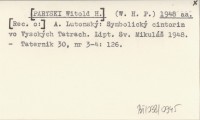 A. Lutonskę: Symbolickę cintorin vo Vysokęch Tatrach. Lipt. Sv. Mikuláč 1948.