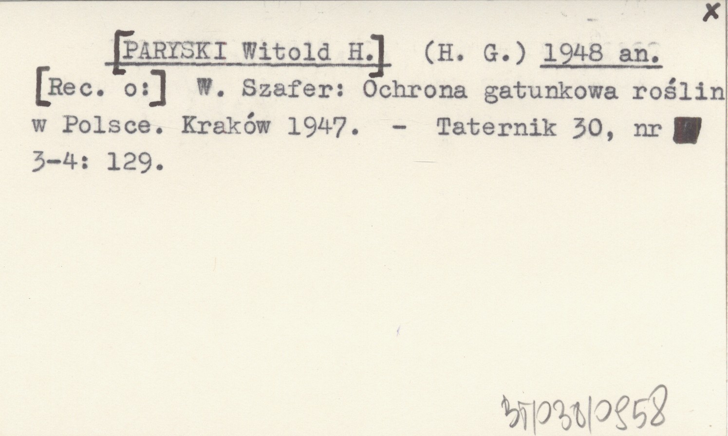 (H. G.) [PARYSKI Witold H.] 1948 an W. Szafer: Ochrona gatunkowa roślin w Polsce. Kraków 1947.