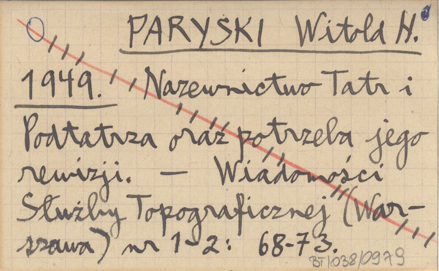 PARYSKI Witold H. 1949 Nazewnictwo Tatr i Podtatrza oraz potrzeba jego rewizji.