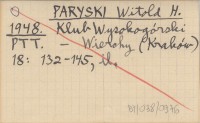 PARYSKI Witold H. 1948 Klub Wysokogórski PTT.