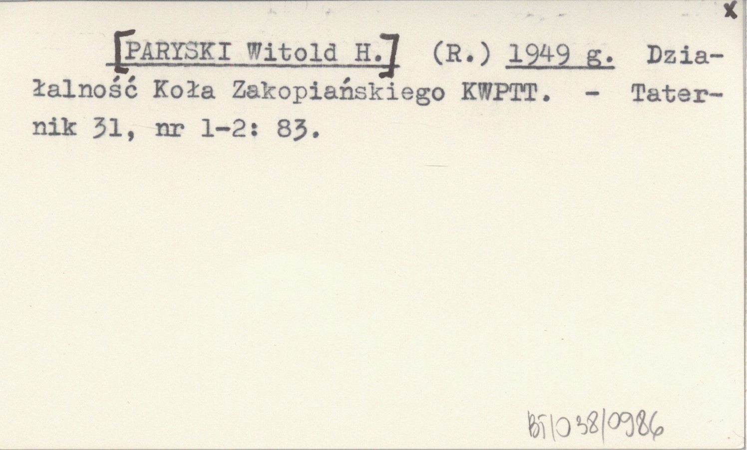 (R.) [PARYSKI Witold H.] 1949 g Działalność Koła Zakopiańskiego KWPTT.