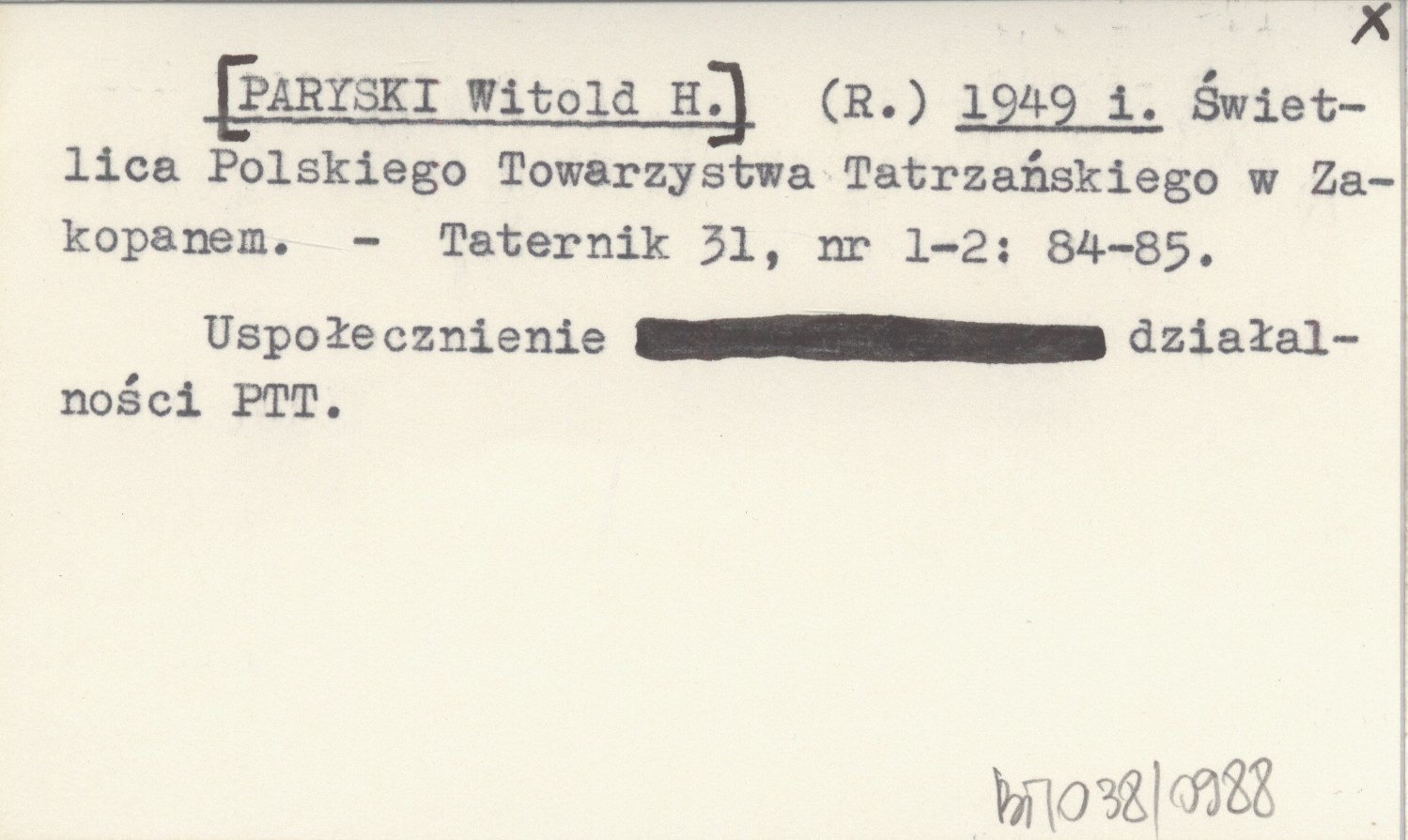 Projekt Digitalizacja fiszek z Bibliografią Tatr i Podtatrza Witolda Henryka Paryskiego jest finansowany ze środków Ministra Kultury i Dziedzictwa Narodowego oraz Tatrzańskiego Parku Narodowego.