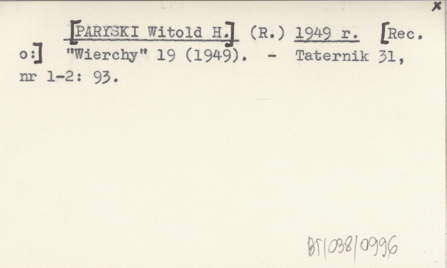 (R.) [PARYSKI Witold H.] 1949 r "Wierchy" 19 (1949).