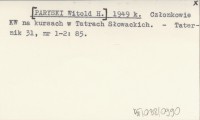 [PARYSKI Witold H.] 1949 m Konferencja Taternicka.