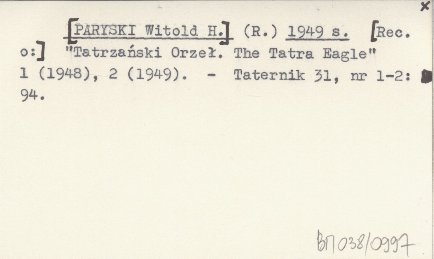 (R.) [PARYSKI Witold H.] 1949 s "Tatrzański Orzeł. The Tatra Eagle" 1 (1948), 2 (1949).