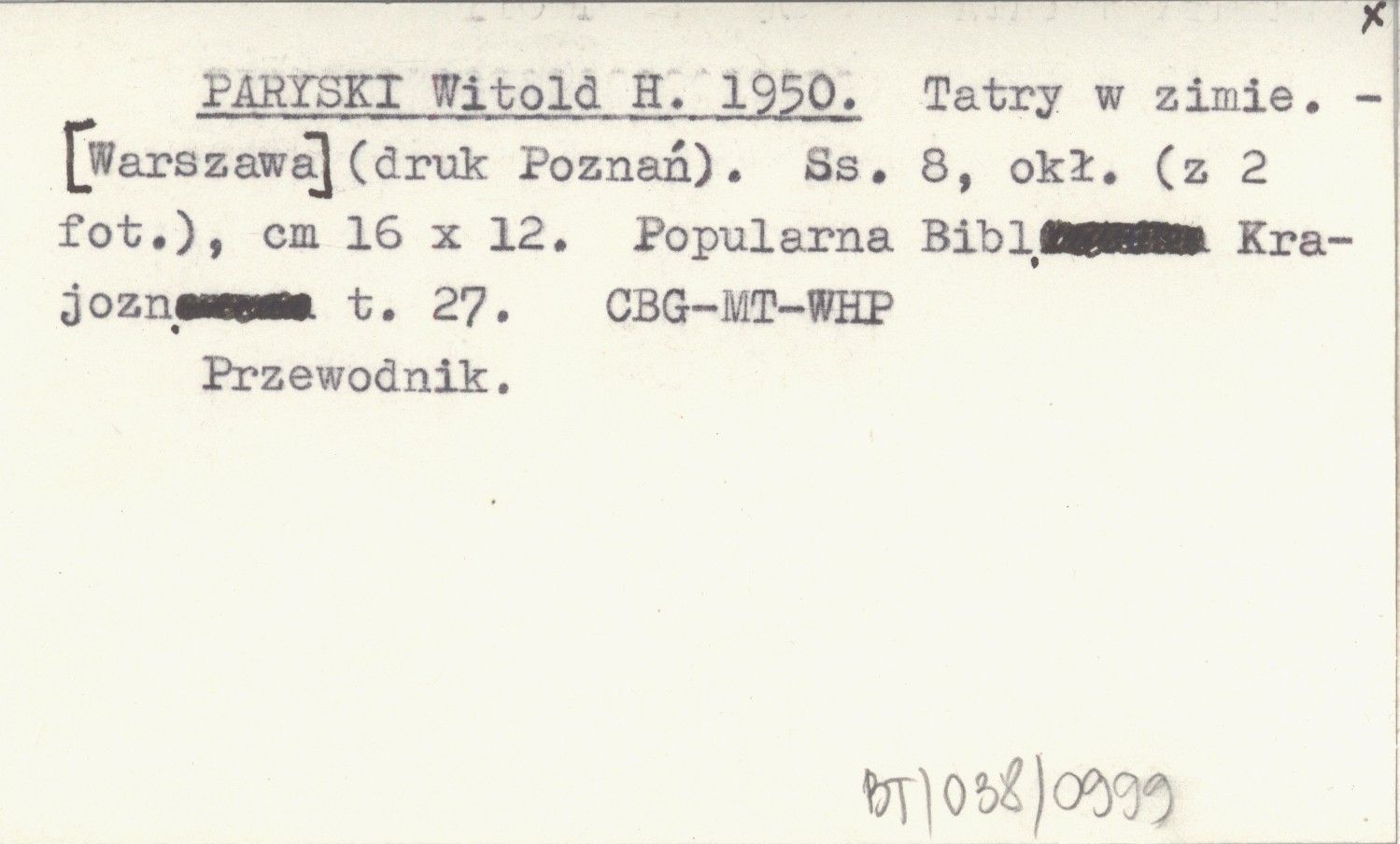 Projekt Digitalizacja fiszek z Bibliografią Tatr i Podtatrza Witolda Henryka Paryskiego jest finansowany ze środków Ministra Kultury i Dziedzictwa Narodowego oraz Tatrzańskiego Parku Narodowego.