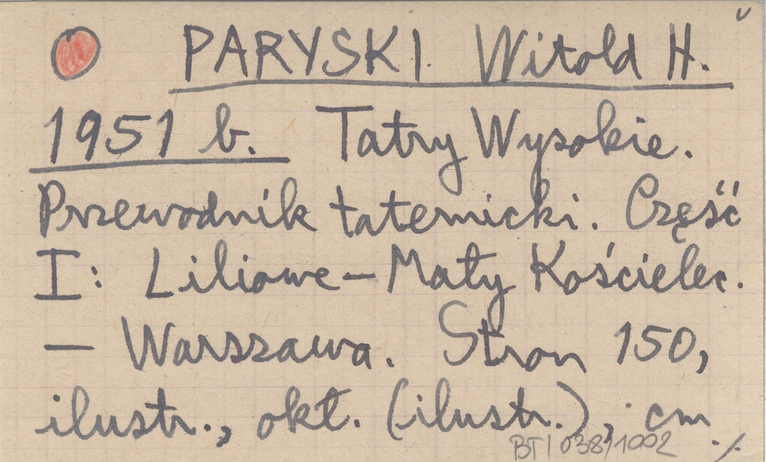 PARYSKI Witold H. 1951 b Tatry Wysokie. Przewodnik taternicki. Część I: Liliowe - Mały Kościelec.