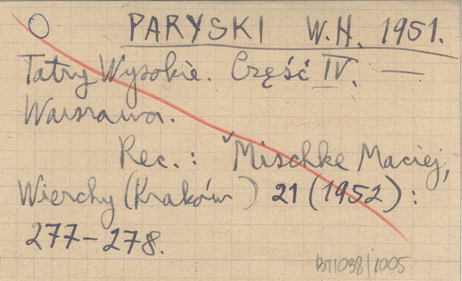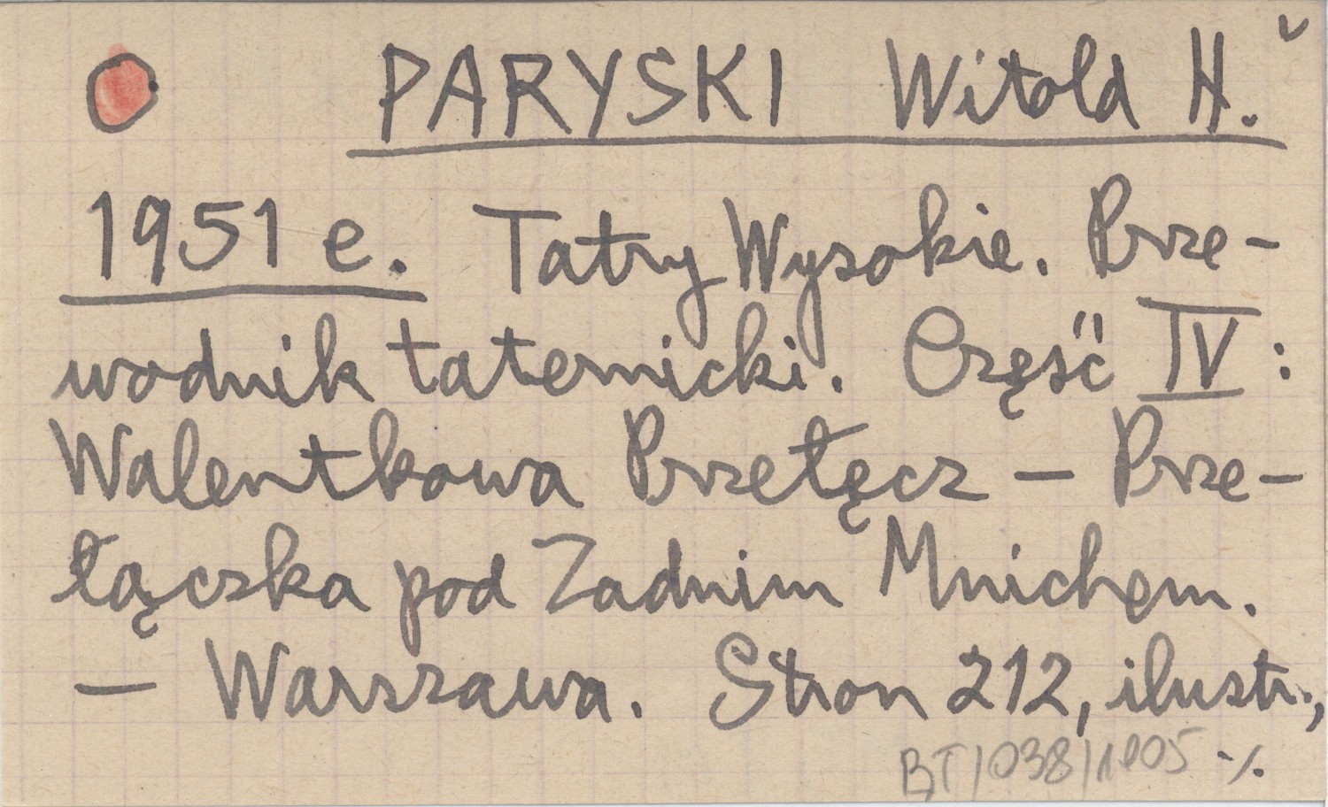 PARYSKI Witold H. 1951 e Tatry Wysokie. Przewodnik taternicki. Część IV: Walentkowa Przełęcz - Przełączka pod Zadnim Mnichem.