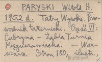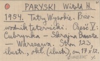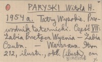W. H. P. [PARYSKI Witold H.] 1952 c Bibliografia tatrzańska.