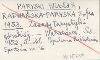 PARYSKI Witold H. RADWAŃSKA-PARYSKA, Zofia. ; 1953 Zasady turystyki górskiej.