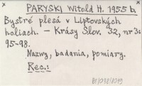 PARYSKI Witold H. 1955 b Bystré plesá v Liptovských holiach.