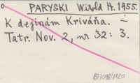PARYSKI Witold H. 1955 K dejinám Kriváňa.
