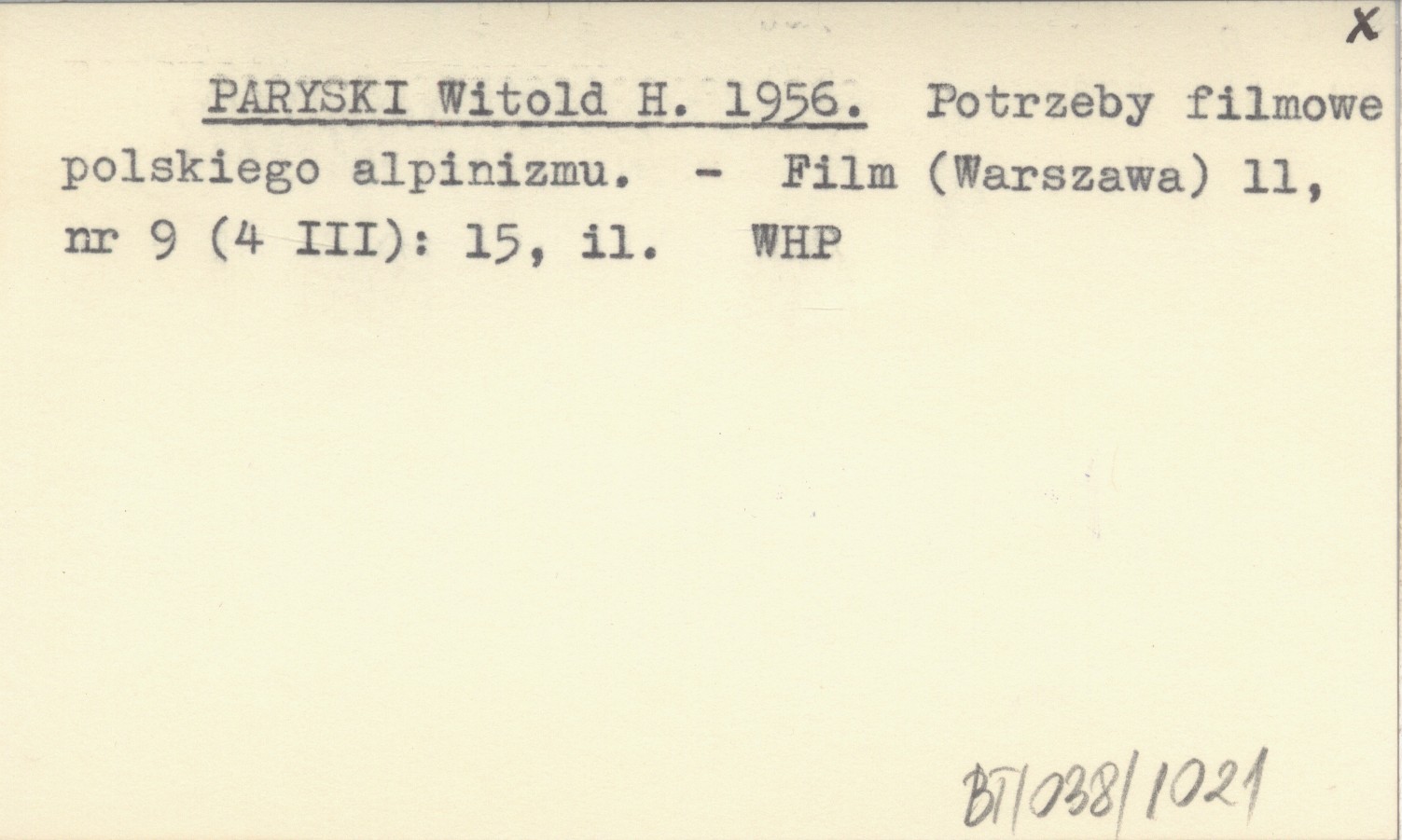 PARYSKI Witold H. 1956 Potrzeby filmowe polskiego alpinizmu.