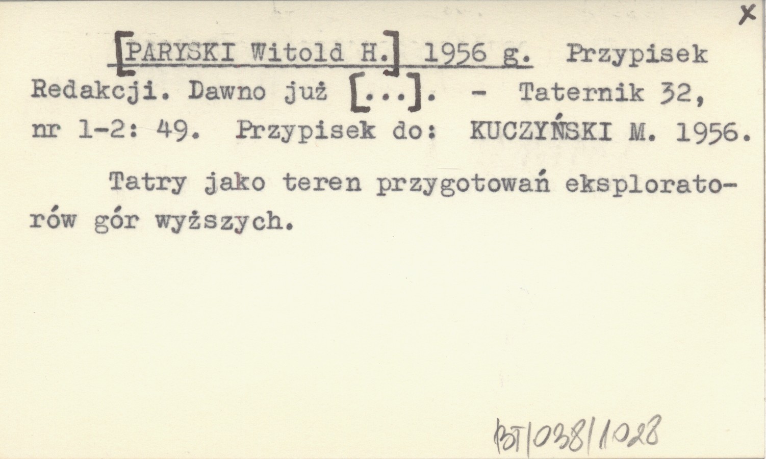 Taternik, 32, nr 1-2: 49. Tatry jako teren przygotowań eksploratorów gór wyższych. Przypisek do: KUCZYŃSKI M. 1956