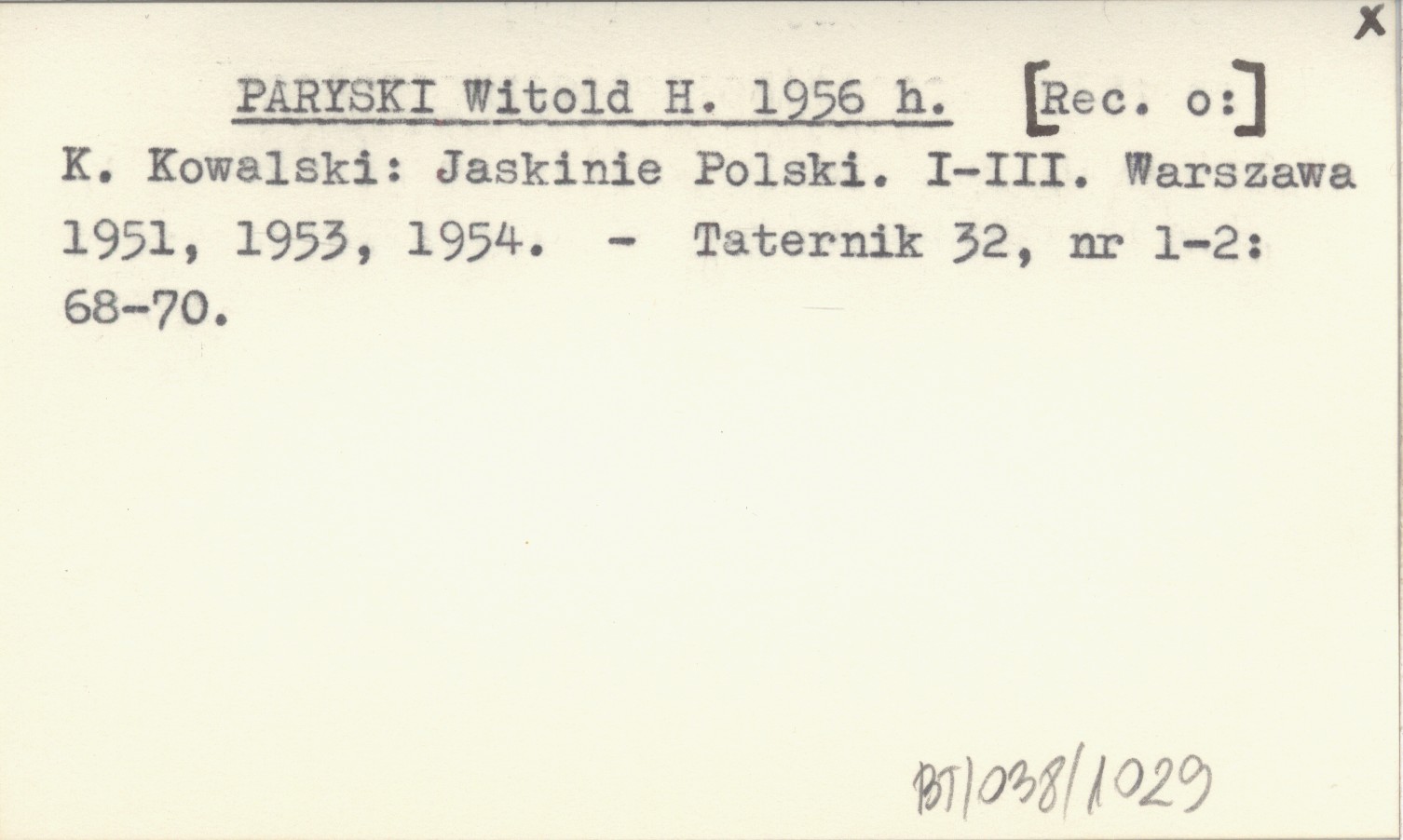PARYSKI Witold H. 1956 h K. Kowalski: Jaskinie Polski. I-III. Warszawa 1951, 1953, 1954.