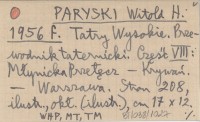 [PARYSKI Witold H.] 1956 c Zestawienie wydanych dotąd numerów "Taternika".