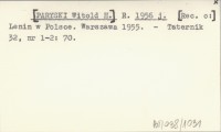 R. [PARYSKI Witold H.] 1956 j Lenin w Polsce. Warszawa 1955.