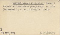 PARYSKI Witold H. 1957 a Tatry i Podhale w literaturze powojennej.