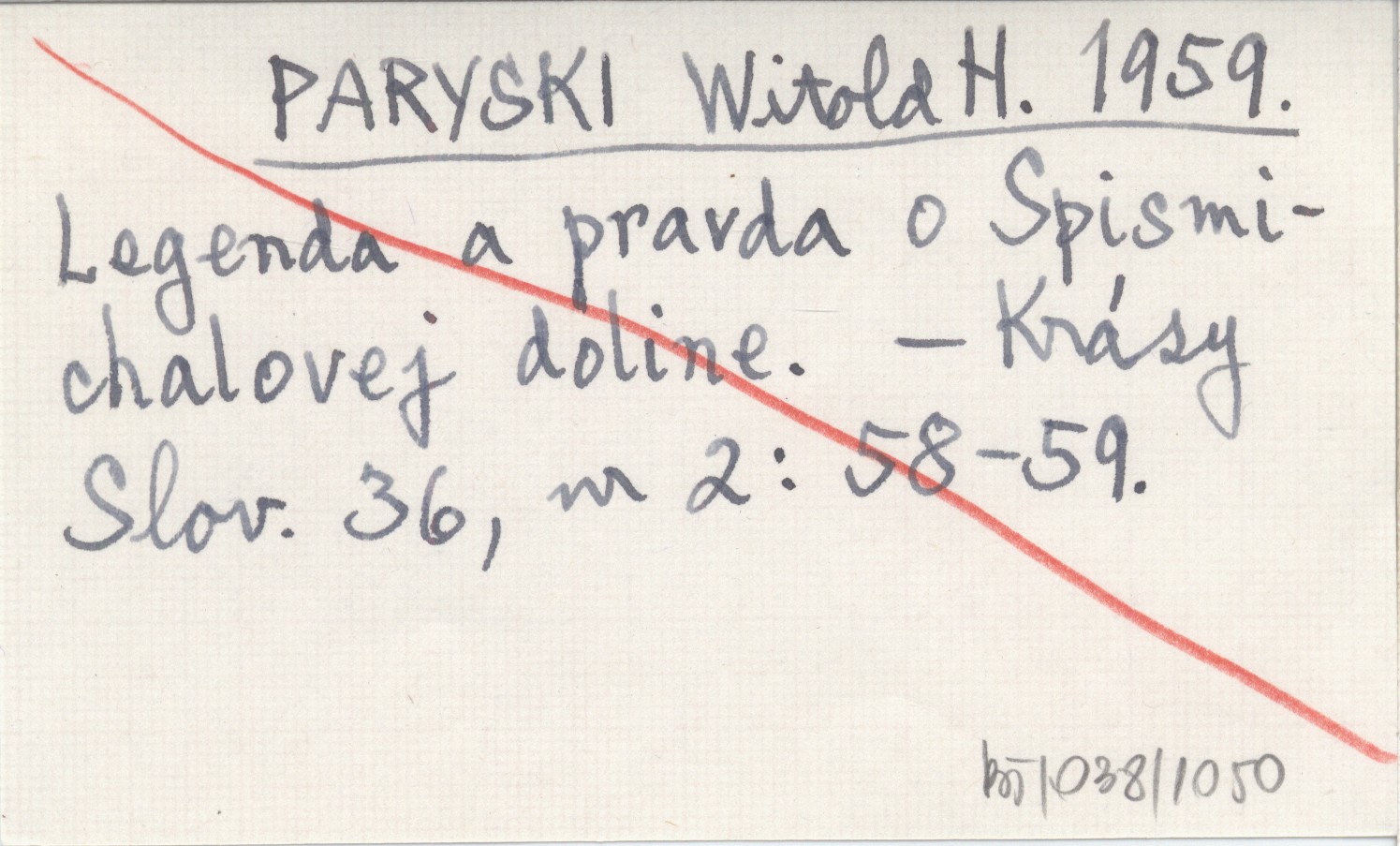 PARYSKI Witold H. 1959 Legenda a pravda o Spismichalovej doline.