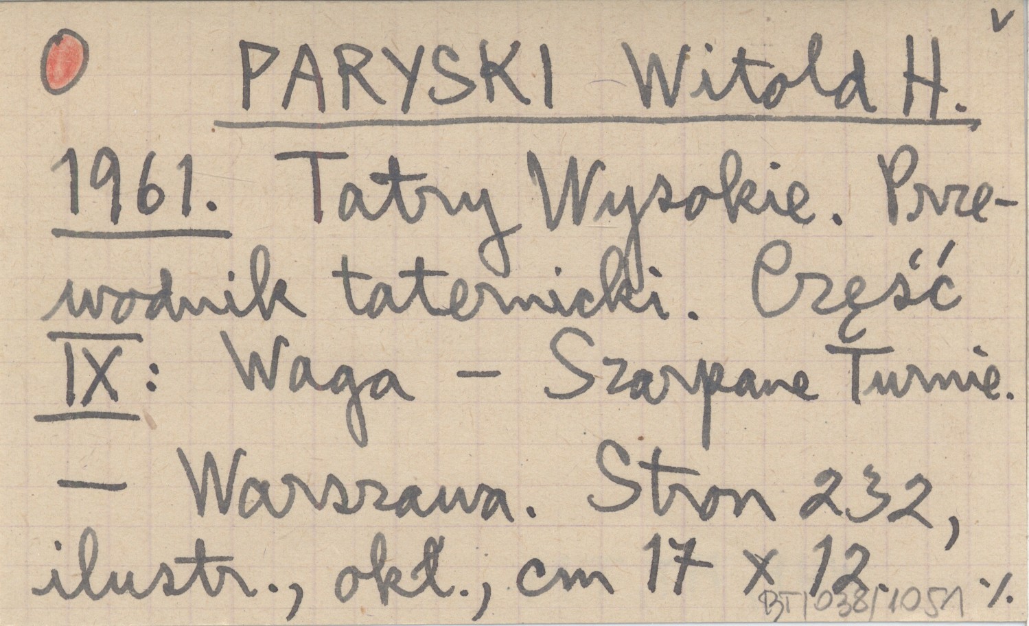 PARYSKI Witold H. 1961 Tatry Wysokie. Przewodnik taternicki. Część IX: Waga - Szarpane Turnie.