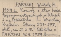 PARYSKI Witold H. 1959 c Rozwój i stan badań toponomastycznych w Tatrach i na Podtatrzu.