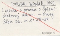 PARYSKI Witold H. 1959 Legenda a pravda o Spismichalovej doline.