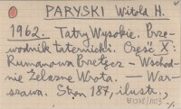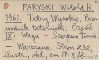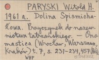 PARYSKI Witold H. 1959 b Rozwój i stan badań toponomastycznych w Tatrach i na Podtatrzu.