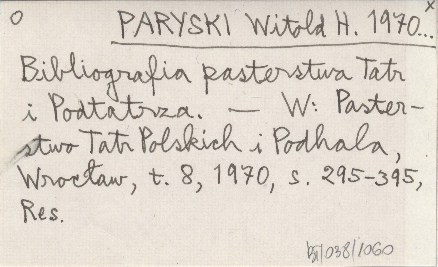 PARYSKI Witold H. 1970... Bibliografia pasterstwa Tatr i Podtatrza.
