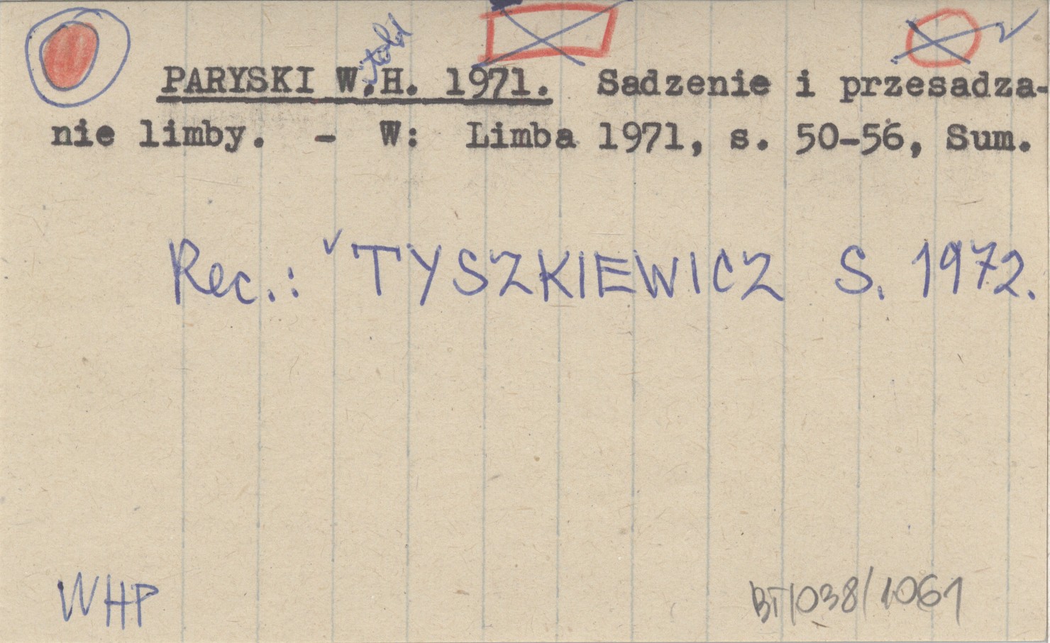 PARYSKI Witold H. 1971 Sadzenie i przesadzanie limby.