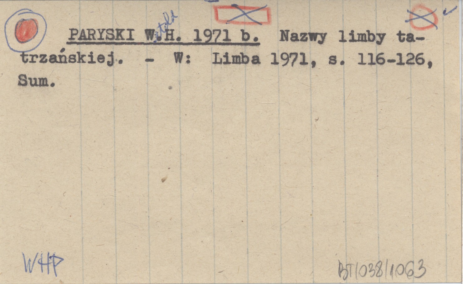 PARYSKI Witold H. 1971 b Nazwy limby tatrzańskiej.
