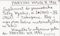 PARYSKI Witold H. 1966 Suplement do przewodnika Tatry Wysokie, cz. I (1951) - XII (1965).