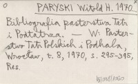 PARYSKI Witold H. 1970... Bibliografia pasterstwa Tatr i Podtatrza.