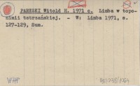 PARYSKI Witold H. 1971 d Bibliografia limby tatrzańskiej.