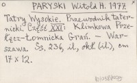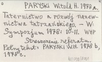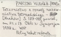 PARYSKI Witold H. 1978 a Taternictwo a rozwój nazewnictwa tatrzańskiego.