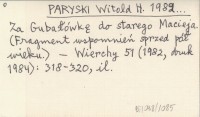 PARYSKI Witold H. 1982... Za Gubałówkę do starego Macieja. (Fragment wspomnień sprzed pół wieku).