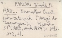 PARYSKI Witold H. 1982... Bronisław Czech jako taternik. (Uwagi do życiorysu).
