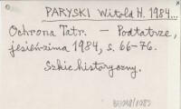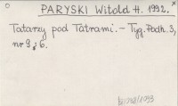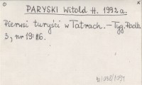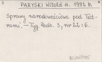PARYSKI Witold H. 1992 b Sprawy narodowościowe pod Tatrami.