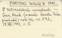PARYSKI Witold H. 1991... O tatrzańskich mnichach.