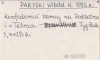PARYSKI Witold H. 1992 e Konfederaci barscy na Podtatrzu i w Tatrach.