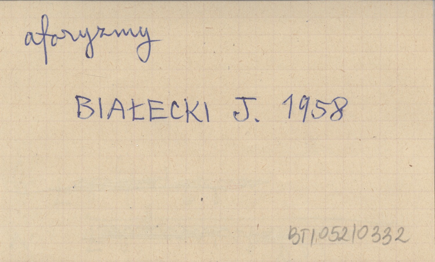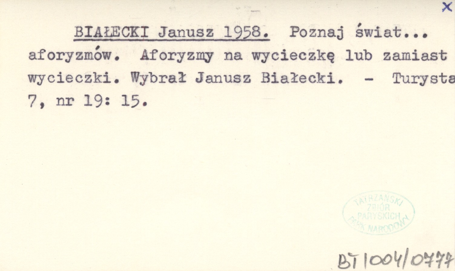 BIAŁECKI Janusz 1958 Poznaj świat... aforyzmów. Aforyzmy na wycieczkę lub zamiast wycieczki. Wybrał Janusz Białecki.