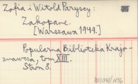 Projekt Digitalizacja fiszek z Bibliografią Tatr i Podtatrza Witolda Henryka Paryskiego jest finansowany ze środków Ministra Kultury i Dziedzictwa Narodowego oraz Tatrzańskiego Parku Narodowego.