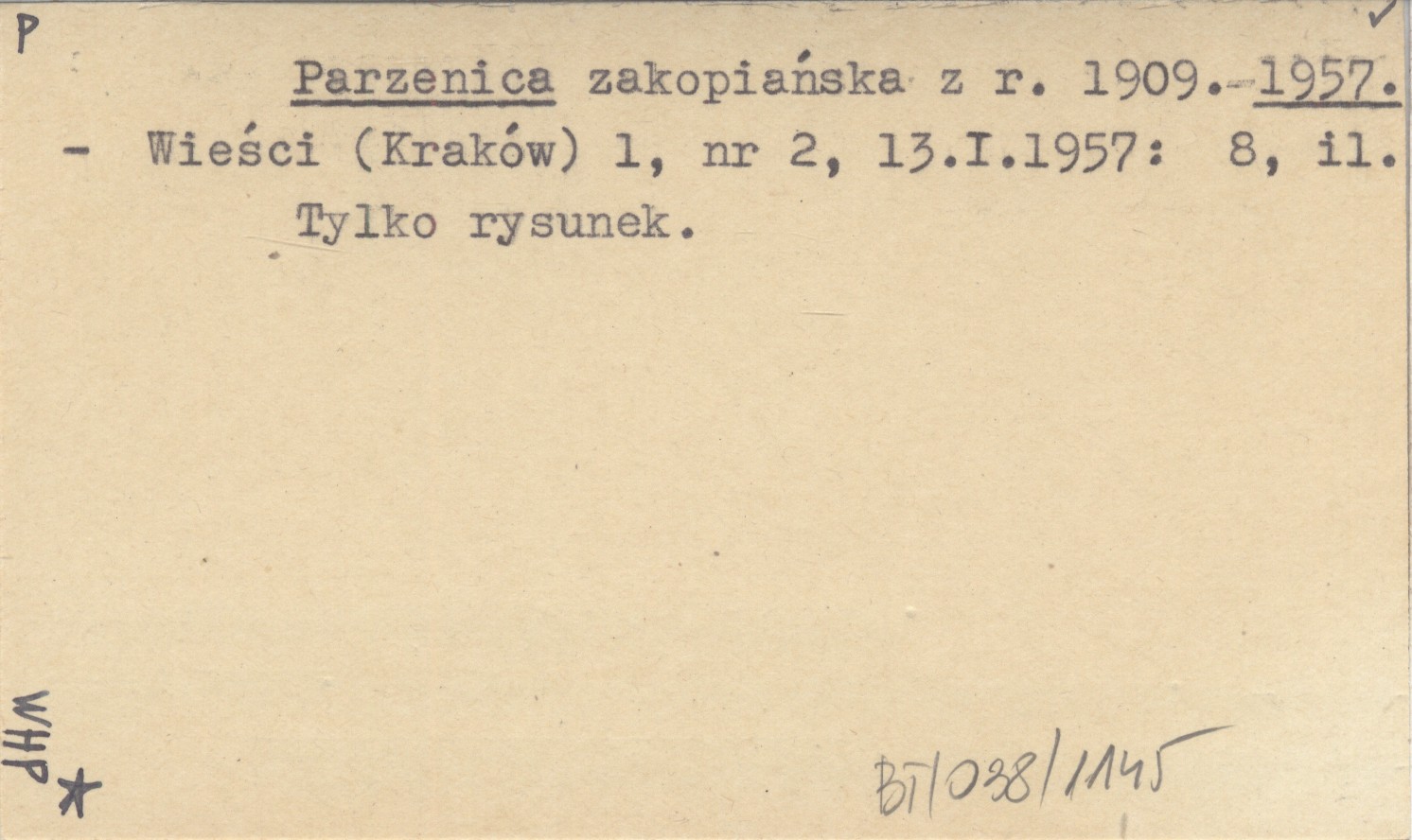 Wieści (Kraków) , 1, nr 2 (13 I 1957): 8, il. Tylko rysunek.