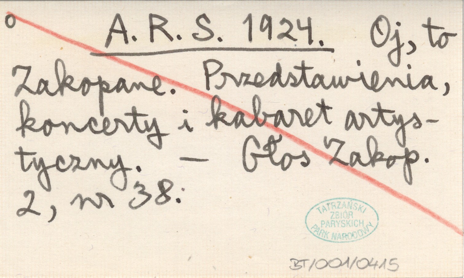 A. R. S. 1924 Oj, to Zakopane. Przedstawienia, koncerty i kabaret artystyczny.